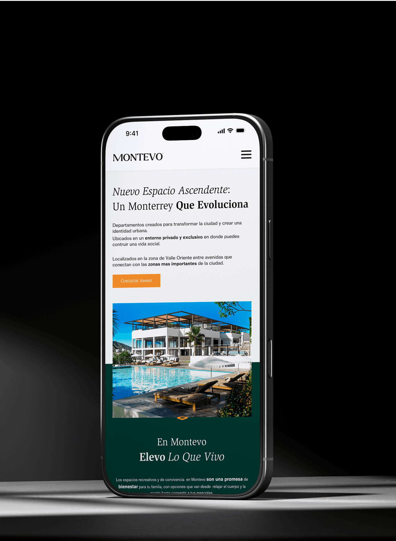A sales page for a building of apartments in Monterrey for high-ticket customers.
